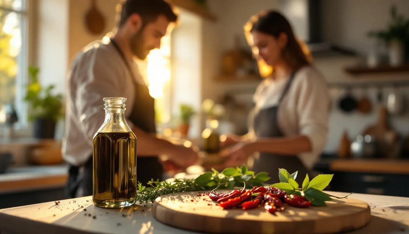 La macération à froid représente la méthode traditionnelle. Placez simplement vos piments et aromates dans une bouteille stérilisée et recouvrez d’huile d’olive. Laissez infuser à température ambiante, à l’abri de la lumière, pendant au moins une semaine. Certains attendent jusqu’à trois semaines pour une puissance maximale. Cette patience développe des arômes complexes et subtils.